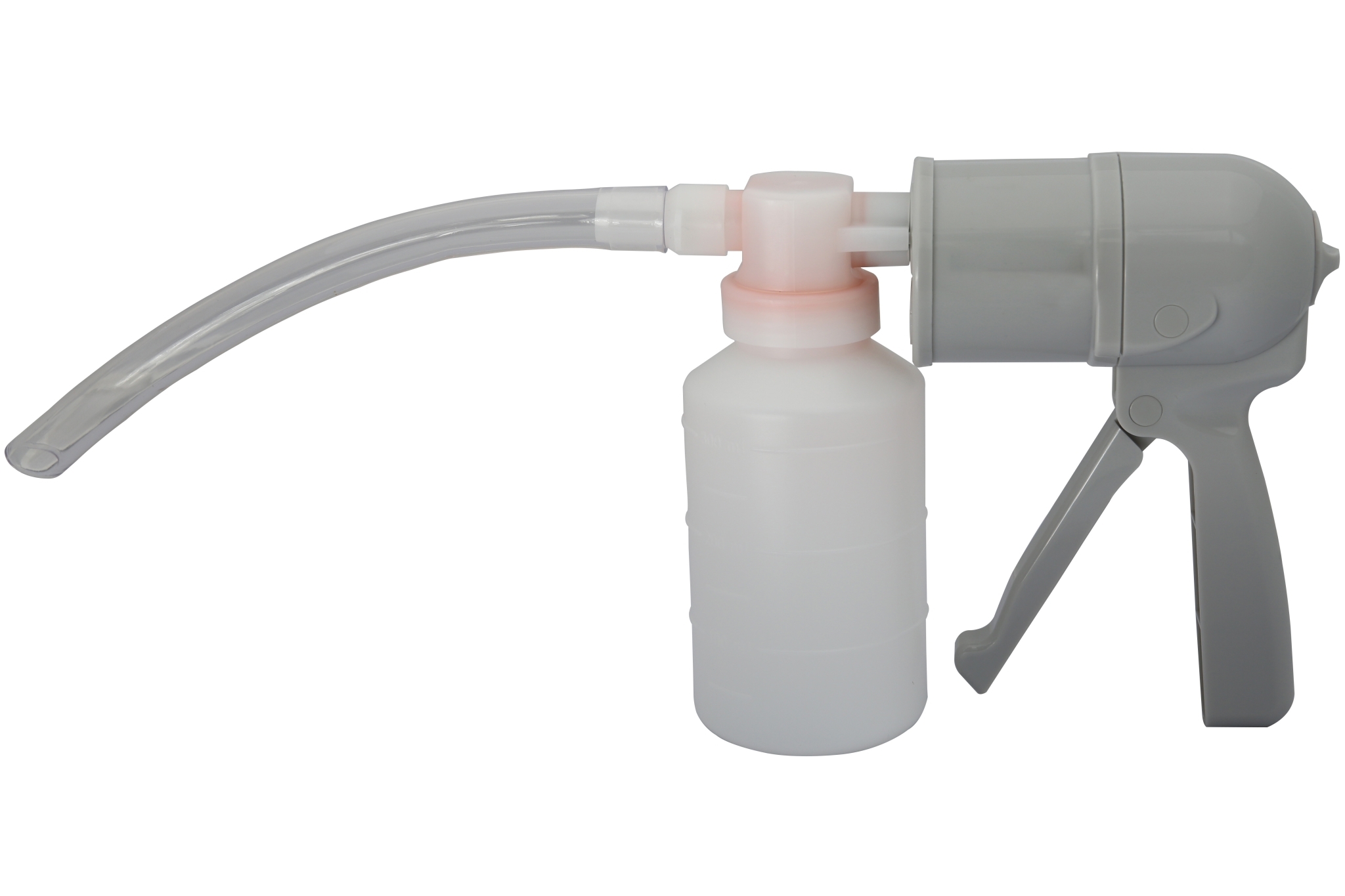 • Manuell håndsug bestående av en gjenbrukbar del og utskiftbare engangsbeholdere.