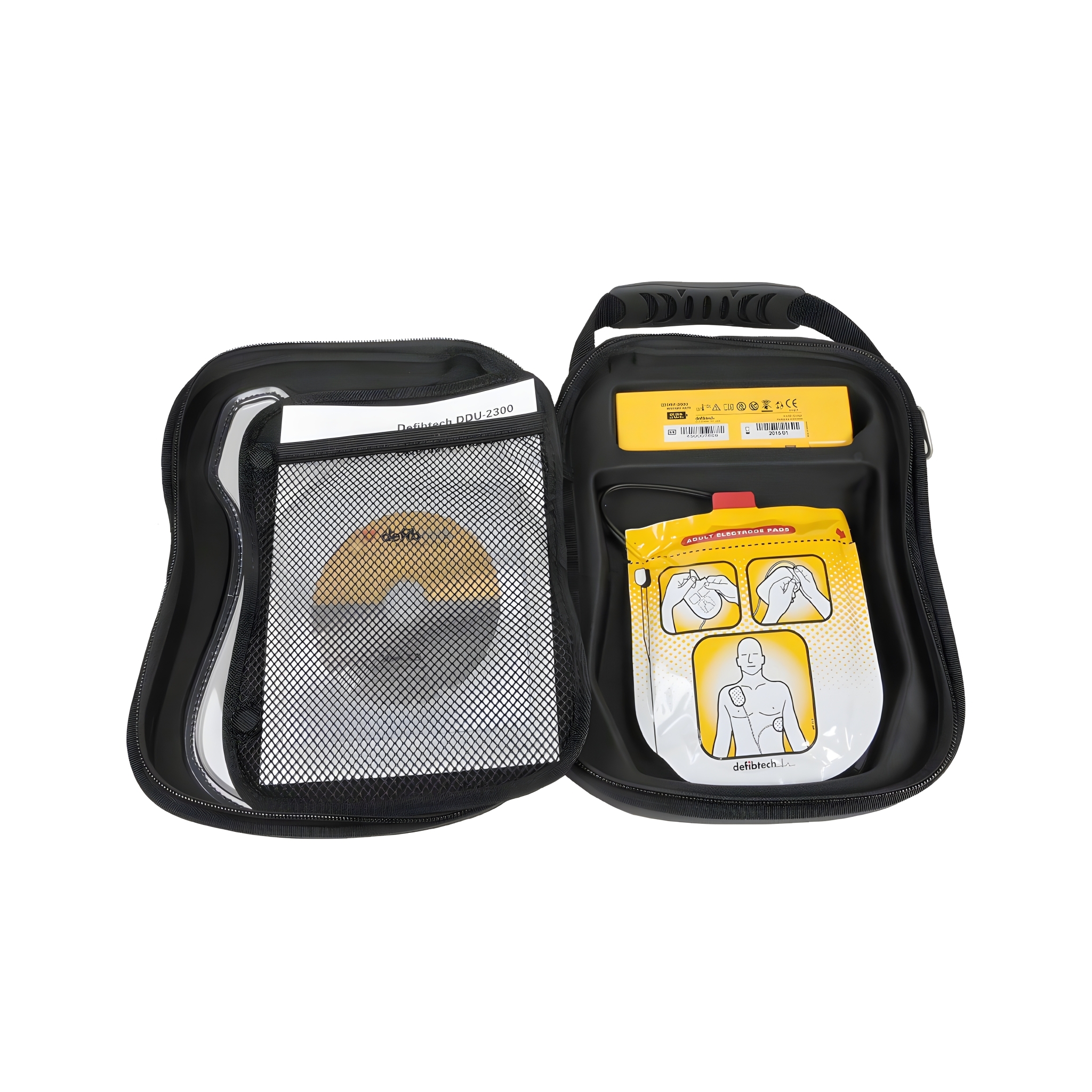 Praktisk bæreveske tilpasset Defibtech Lifeline VIEW og PRO hjertestartere. Vesken har en egen lomme med plass til ekstrautstyr som et par elektroder eller et hjertestarter-utstyrssett.
