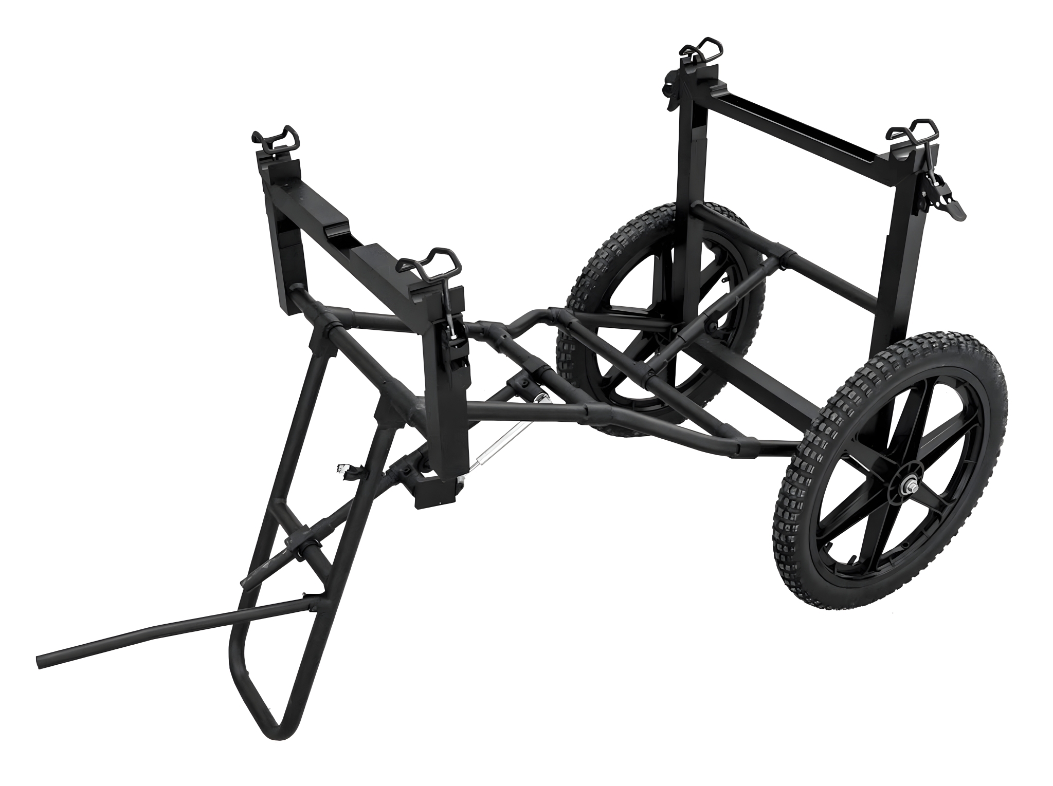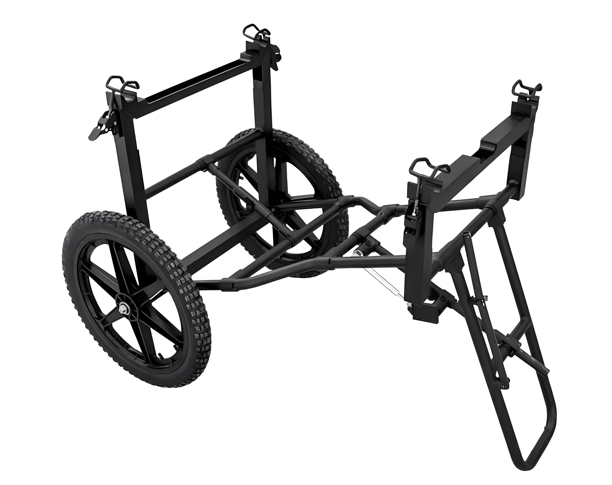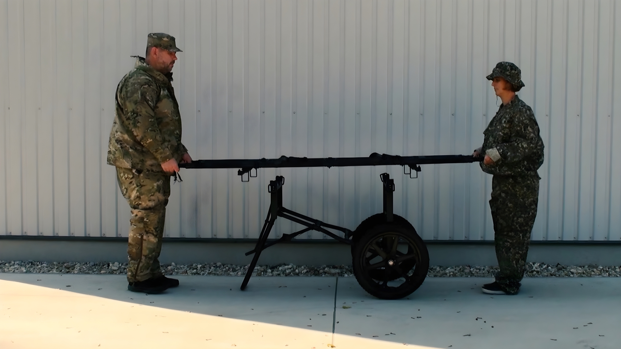 Hjulvognen har en slitesterk, sammenleggbar aluminiumsramme som kombinerer høy styrke med lav vekt. Dette gjør den enkel å transportere, klargjøre og lagre. Den kan raskt festes til kompatible bårer, slik at én eller to operatører effektivt kan transportere skadde i feltforhold. De store terrenghjulene gir god stabilitet og manøvrerbarhet på ujevnt underlag som sand, snø, grus og røft terreng.